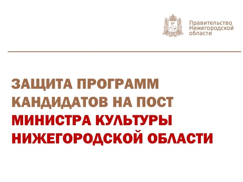 Отбор на пост министра культуры проходит в рамках региональной программы «Команда правительства», которая стартовала в мае 2018 года. По итогам трех этапов на эту должность претендовали 245 человек. Многие из них также участвовали в конкурсных отборах в резерв управленческих кадров правительства и на посты заместителей главы Нижнего Новгорода. По окончании тестирования и записи видеопрезентаций участники должны были выбрать только одну траекторию. Траекторию на пост министра в итоге выбрали 35 человек. Проекты кандидатов оценит экспертная комиссия, более чем наполовину состоящая из представителей культурной общественности Нижегородской области.