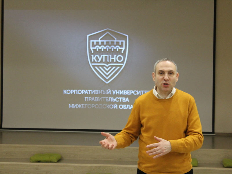 В Корпоративном университете Правительства Нижегородской области прошел мастер-класс «Как выиграть с командой» старшего преподавателя РАНХиГС, ведущего радиостанции «Серебряный дождь» Леонида Клейна.