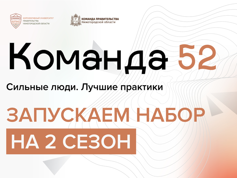 В Нижегородской области запущен второй сезон образовательной программы «Команда 52», которая направлена на развитие перспективных управленцев в муниципалитетах Нижегородской области. Регистрация на программу открыта до 14 июня на портале «Команды Правительства».