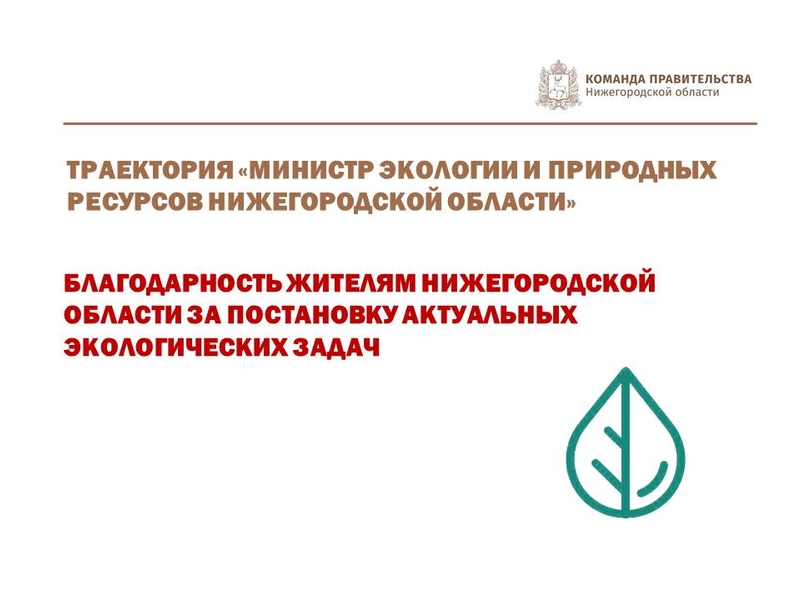 С 17 октября 2018 года на портале «Команда Правительства» стартовали отборочные и оценочные процедуры на пост министра экологии и природных ресурсов Нижегородской области. Параллельно с 7 ноября открылся этап сбора «Экологический задач». Каждый неравнодушный житель региона мог поставить будущему главе ведомства и всему министерству задачу в сфере экологии и природных ресурсов.