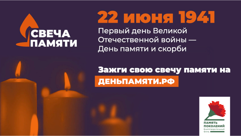 В России вновь стартовала онлайн-акция «Свеча памяти». До 22-го июня по всей стране будут зажигать свечи в память о тех, кто отдал жизнь во имя Великой Победы. Уже сейчас на сайте деньпамяти.рф каждый может зажечь свою виртуальную свечу.