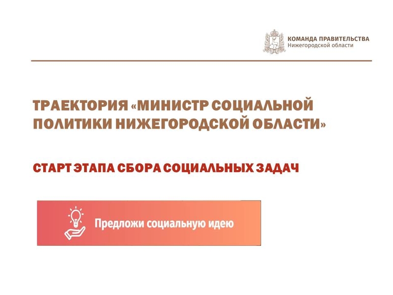 30 января 2019 года в рамках отборочных процедур на пост министра социальной политики Нижегородской области на портале «Команда Правительства» стартовал интерактивный этап, который представляет собой сбор социальных идей.